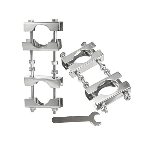 Coehaopike 2 個セット ダブルアンテナマストクランプ パイプ固定金具 ボルトマスト 傘ホルダー ポール マストクランプ付き