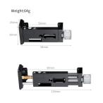 【PC-90II】主な仕様 奥行:25mm 幅:38mm 高さ:84mm スマートフォン取付部調整幅:56-90mm 重量:64g 取付ネジ:1/4インチ(細ネジ)