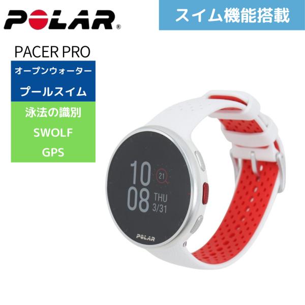 - 【POLAR ポラール】 スマートウォッチ 時計 PACER PRO ホワイトレッドSーL 900102180 水泳