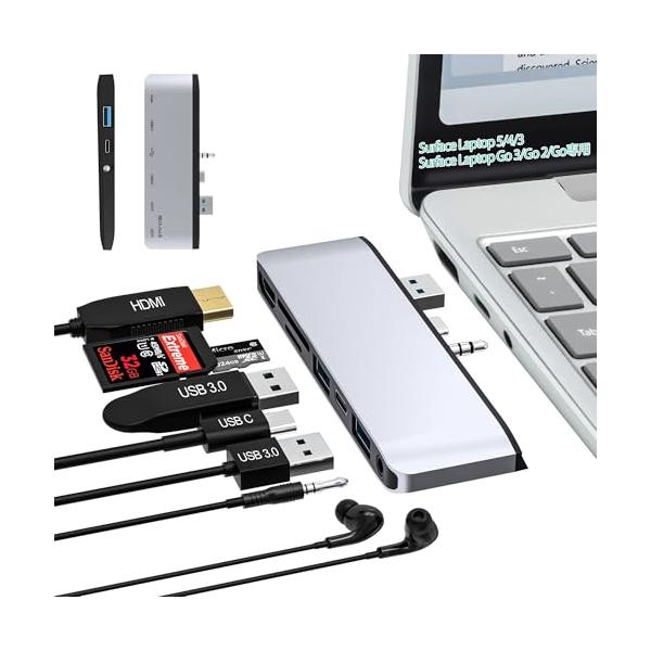 Surface Laptop 5/4/3/Go/Go 2/Go 3ハブ- 4K@30Hz HDMI、2x USB 3.0、USB-C、SD TF