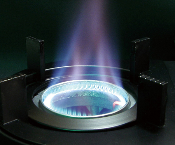 ●内炎式バーナーの渦巻く炎により高火力、高効率です。