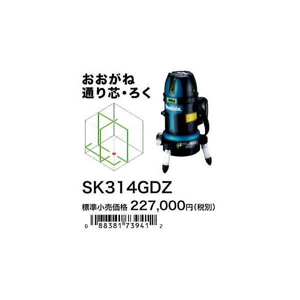 【リモコン追尾受光器+バイス付】SK314GDZ マキタ 屋内・屋外兼用墨出し器 ≪グリーン・超高輝度・おおがね・通り芯・ろく≫