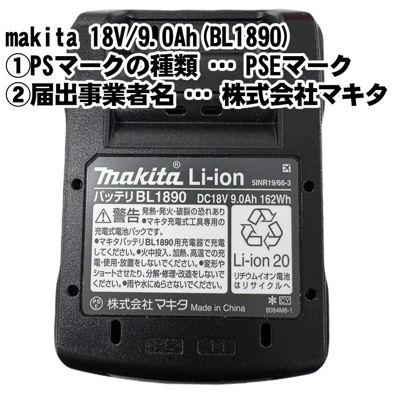 マキタ(makita) BL1890 (A-79809)大容量リチウムイオンバッテリ 18V (9.0Ah) 残容量表示付 (化粧箱付) コードレス ◆