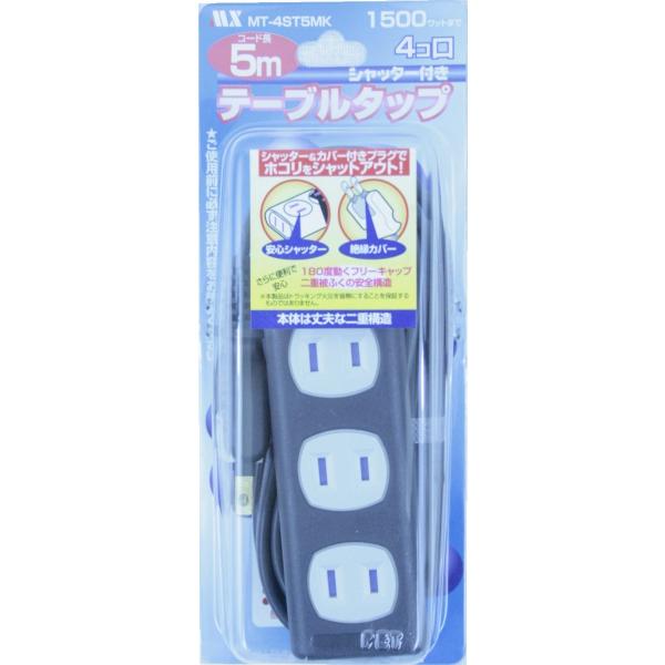電源タップ シャッター付き テーブルタップ 延長コード 4個口 黒 5m MT-4ST5MK