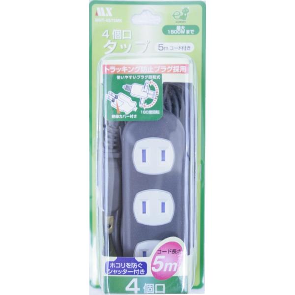 電源タップ [4個口] 延長コード 5m ブラック 1500W まで ムービープラグ 電源コード MNT-4ST5MK