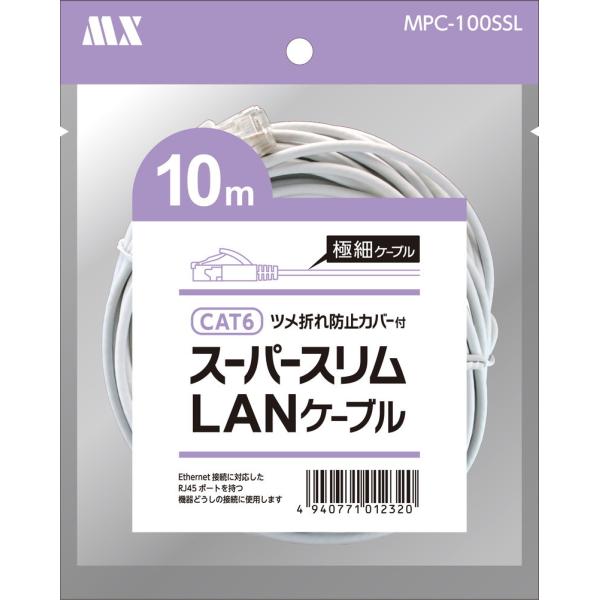 極細 直径約2.8mm CAT6 スーパースリムLANケーブル 10m 爪折れ防止カバー付