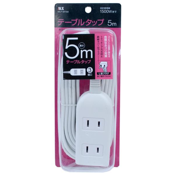 電源タップ [3個口] 延長コード 5m ホワイト 1500W まで 電源コード MLP-MT5M
