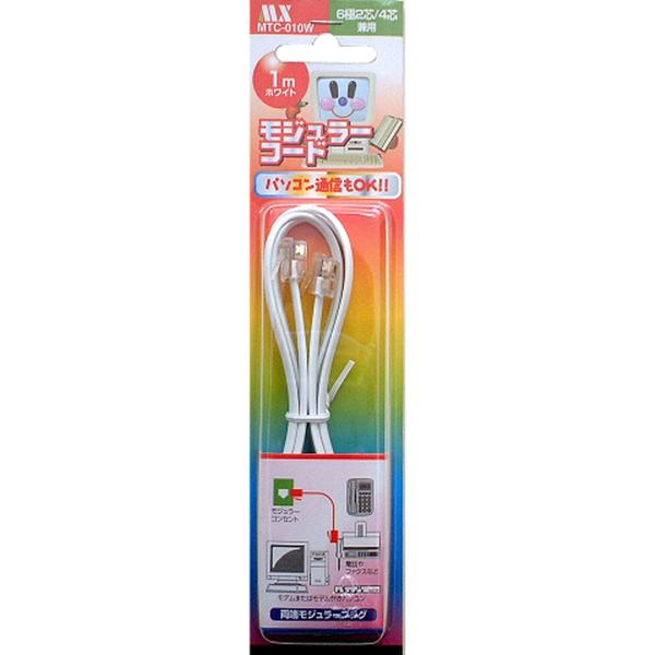 モジュラーコード プラグ付き 6極 4芯/2芯 兼用 電話線 交換 補修用 ノーマルタイプ ホワイト 1m