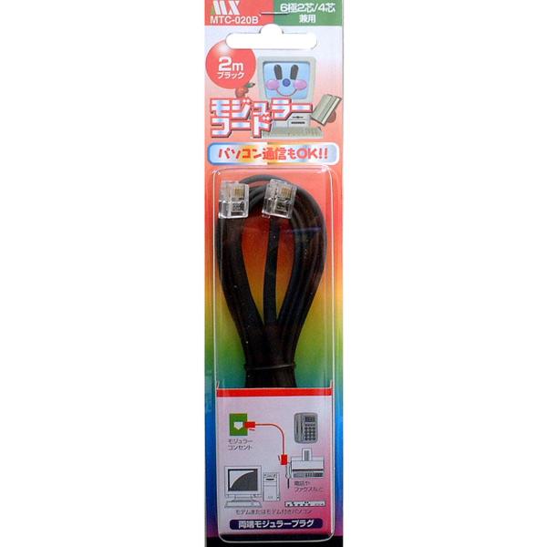 モジュラーコード プラグ付き 6極 4芯/2芯 兼用 電話線 交換 補修用 ノーマルタイプ ブラック 2m