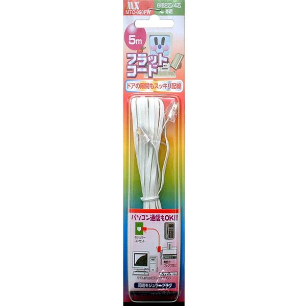 モジュラーコード プラグ付き 6極 4芯/2芯 兼用 電話線 交換 補修用 狭い場所に フラットタイプ ホワイト 5m
