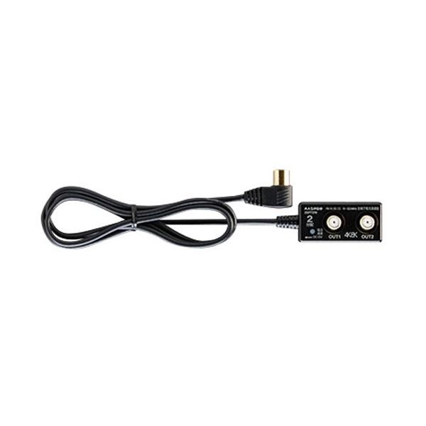 - 4K8Kデジタル対応 3224MHz 屋内用2分配器タップ IN側 L型プラグ(直付け) 2Cケーブル1.5m OUT側 F型端子 IN-OUT(全端子電流通過) 電流容量0.8A(DC15V) DC専用 (AC電源使用不可) ※F型コネクターは付属しておりません。 ※OUT端子に電圧(DC15V)が加わると光るLED