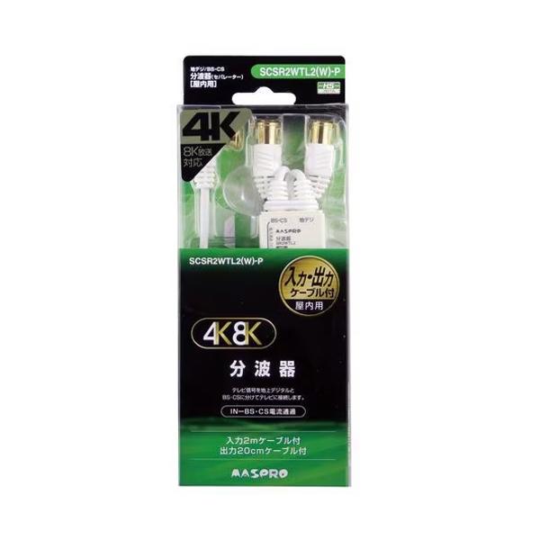 マスプロ電工 MASPRO 4K8K対応 分波器 地デジ BS・CS OUT側プッシュ式プラグ IN側2mケーブル付き SCSR2WTL2 W -P