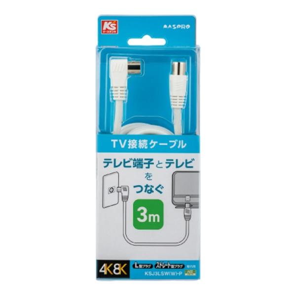 マスプロ電工 片端L型・片端ストレート型プラグ付TV接続ケーブル 3m 屋内用 KSJ3LSW(W)-P 白