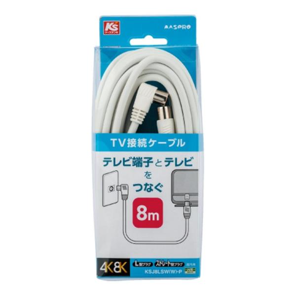 マスプロ電工 片端L型・片端ストレート型プラグ付TV接続ケーブル 8m 屋内用 KSJ8LSW(W)-P 白