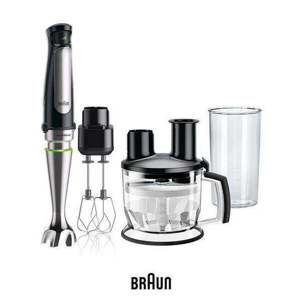 - 商品コード MQ7075XB 電圧/周波数 AC 100V 50/60Hz 消費電力 400W サイズ(mm) 70(W)×70(D)×400(H) 重量(g) 910g ※ブレンダー装着時 コード長(cm) 1.2m 回転数 13,800回 ※ブレンダー装着時(約) 定格時間 ブレンダー:1分 マルチウィスクビーター:4分フードプロセッサー(1.5L):1分 材質 本体:PP、TPEアクティブブレードシャフト:ステンレスフードプロセッサー(1.5L):SAN(ボウル)、PP(蓋)、ステンレス(刃) こねベラ:POM マルチウィスクビーター:POM、ステンレス専用計量カップ:SANスパチュラ:PP、シリコン 色 ブラック/シルバー セット内容 ・本体(モーター部分)・アクティブブレードシャフト・マルチウィスクビーター・フードプロセッサー(カッター、刃ツールx3種、こねベラ) 付属品 専用計量カップ(蓋付)/ 専用スパチュラ 生産国 ルーマニア 結婚祝い 出産祝い プレゼント ギフトおいしさも、時短も、妥協しない。 1台9役で、感覚に寄り添う操作。手間のいらない仕上げも、使い心地も、わたしらしく。スライス・せん切り機能まで備えた多機能モデルで、毎日のごはんもお菓子も、もっと愉しく、もっと思い通りに。あなたの「作りたい」に寄り添う、ハンドブレンダーです。 効率も、仕上がりも、妥協しない。片手操作の25段階スピード調節 「泡立て」も「かき混ぜ」も、思い通りの仕上がりに。 ふんわり軽やかなケーキ生地から、重ためのクッキー生地、なめらかなホイップクリームまで。ブラウン独自の「マルチウィスクビーター」なら、ホイップクリームを約35%*速く仕上げられます。*MQ10/MQS050との比較 1台9役。日々の定番も、ちょっと特別も、これ1台。 スライスやせん切り(太・細)、こねる——フードプロセッサーで面倒な下ごしらえも効率的に。「つぶす・混ぜる」のハンドブレンダーと、「泡立てる・かき混ぜる」のマルチウィスクビーターを組み合わせれば、毎日のごはんも、お菓子も、レシピの幅は無限に広がります。 感覚で仕上がりをコントロール。 業界初「イージースマートスピードテクノロジー」搭載。握る力だけでスピードを直感操作。やさしく握れば食感を残し、しっかり握ればなめらかに。片手で、自分好みの仕上がりを思いのままに。 手の動きに、刃が応える。最大5倍*のなめらかさ。 世界初*、上下にしなやかに動く「アクティブブレードテクノロジー」搭載(特許取得済)。撹拌範囲は約2.5倍*に広がり、食材を逃さずキャッチ。ナッツも根菜も、力を入れずになめらかに仕上がります。*当社従来品と比較して 安心して使える、ドイツ設計の400Wハイパワーモーター 信頼のブラウンクオリティで冷凍食材*やかたい食材もパワフルに撹拌。人間工学に基づいたスリム&フィットグリップで、安定した操作が可能です。*半解凍