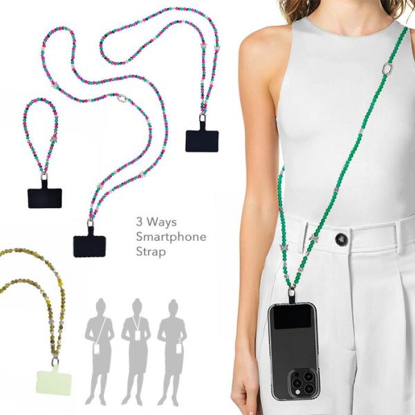 3way ショルダー紐 スマホストラップ チェーン 斜め掛け 手持ち ショート 汎用 カラビナ付き ビーズ アクセサリー ネックストラップ ボヘミア風