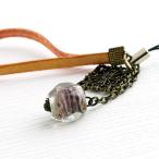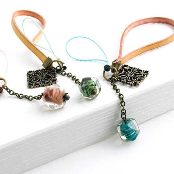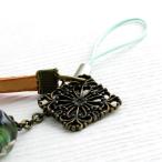 スクエアチャーム01(古金)、ストラップ松葉、革紐3mm(濃茶) - 楽天での商品説明(ガラスアクセサリー きなりがらす)