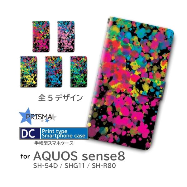 AQUOS sense8 ケース マーブル 原色 SH-54D SHG11 SH-M26 手帳型 スマホケース