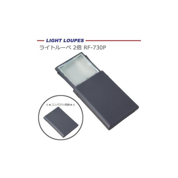 - ライトルーペ 2倍 RF-730P 両側のボタンを押すとレンズが飛び出すルーペです。さらにボタンを押すとライトがつきます。片手で操作できるので大変便利。 生産国:中国 素材・材質:ABS樹脂 商品サイズ:収納時:94×66×14mm、展開時:150×66×14mm 重量:60g 仕様:倍率:2倍レンズサイズ:45×45mmライト付単4電池2本使用(別売) 旅行のお供に便利なライトルーペ♪ キーワード【ダイエット 健康 メガネ 老眼鏡 拡大鏡 ルーペ】
