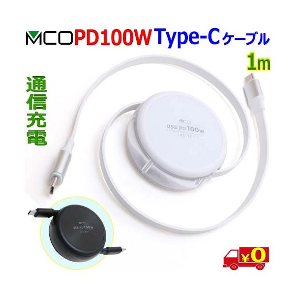 ミヨシ MCO UPD-R01 巻取り式ケーブル【1m】USB Type C PD100W 3A以上充電用eMarker搭載 安心の熱感知センサー搭載【送料無料n】USB Type-C to Type c cable
