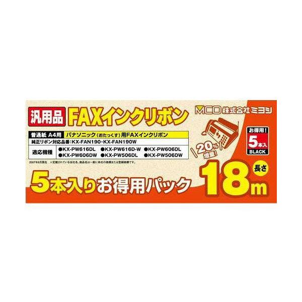 - 20%増量お得なFAXインクリボン※こちらは【取り寄せ商品】です。必ず商品名等に「取り寄せ商品」と表記の商品についてをご確認ください。20%増量 お得なFAXインクリボン18m パナソニック社製KX-FAN190に対応しております。…検索キーワード:FXS18PB5X6