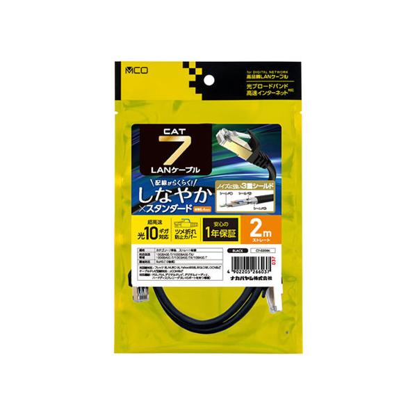 ナカバヤシ MCO CAT.7 LANケーブル 2m ブラック C7-020BK