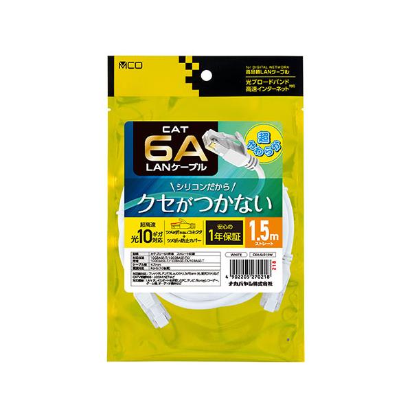 ナカバヤシ CAT.6A LANケーブル シリコン被覆 1.5m ホワイト 柔らかく絡まない C6A-SL015W