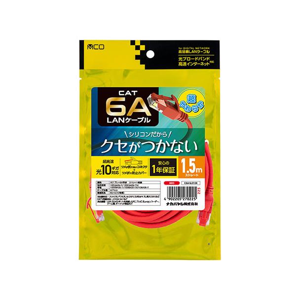 ナカバヤシ CAT.6A LANケーブル シリコン被覆 1.5m レッド 柔らかく絡まない C6A-SL015R