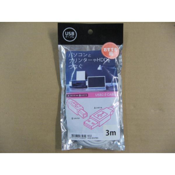 ミヨシ 3m USB2.0ケーブル 【A】⇔【B】 (白) USBB30WH USB-B30/WH 4951241133032