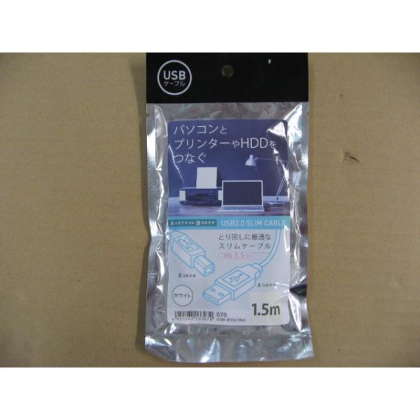 ミヨシ 1.5m USB2.0ケーブル [スリムタイプ] 【A】⇔【B】 (白) USBB15SWH USB-B15S/WH 4951241133070
