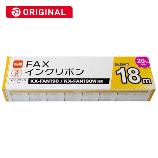 - ■パナソニック製KX-FAN190に対応。 ■純正品と比較して20%(3m)増量。 ■お得な3本入りパック。 ミヨシ普通紙FAX用インクフィルム FB18PB3 (18m×3本入り)この商品はFXS18PB2と類似した商品です。【ビックカメラグループオリジナル】
