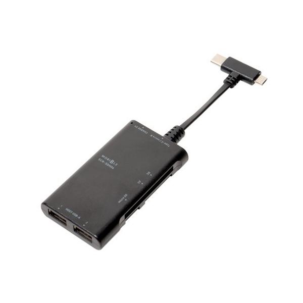 ミヨシ MCO USBmicroB type-Cコネクタ搭載OTGアダプタ USB-HUB2ポ-ト付きカ-ドリ-ダライタ SCR-SDH06/BK