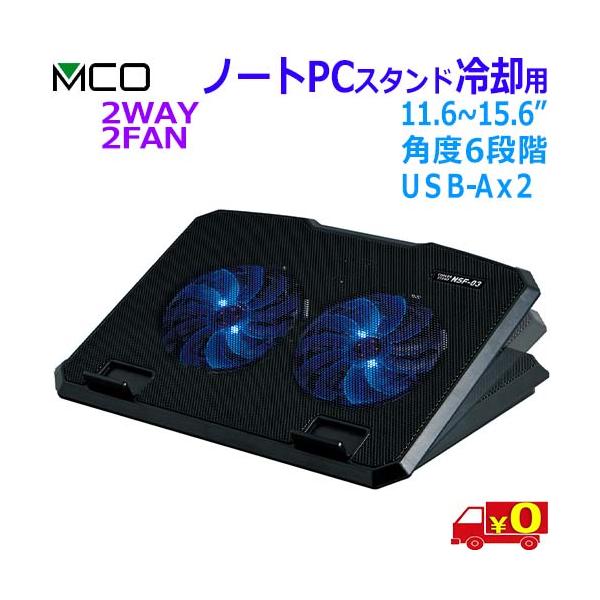 MCO ミヨシ NSF-03 ノートPCスタンド 対応PC 11.6"〜15.6" 2WAY 2FAN 青いLED搭載FAN2基 放熱効果 熱暴走防止 USB2ポート【送料無料t】NotePC Cooler Stand