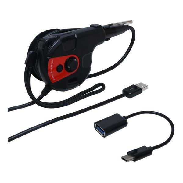 - ●手や目の届かない場所の確認に最適な極細カメラ先端直径わずか5.5mmと極細の、USBカメラです。フレキシブルに動かすことが可能なケーブルタイプで、手や目の届かない隙間の確認に最適です。車の整備・排水口の確認・空調の確認など、幅広いシーンで活用いただけます。●針金のように硬く形状が固定できるグースネックケーブル採用グースネックケーブルを採用しているので、ケーブルの形状を自由に固定できます。曲がった配管や高い場所の点検に便利です。リール式の本体に巻き取り、ケーブルの長さ調整や収納が可能です。●暗い場所でも使える6灯のLEDライト搭載先端部分に調光可能なLEDライトを搭載し、肉眼では見えづらい暗い部分も明るく照らして写すことが可能です。調光用の無段階ダイアル搭載で、見やすい明るさに調整することができます。●配管などの確認作業にも安心の防水/防塵仕様カメラ部分はIP67相当の防水/防塵規格に対応。配管内部の確認や、工事現場など過酷な環境での使用にも適しています。IP67とは?規格上最高の防塵性能及び、浅い水面下であれば30分程度浸しても内部に浸水しない防水性能基準をクリアしています。●付属のホストケーブルでスマートフォンやタブレットにも接続可能付属のホストケーブルを併用することにより、パソコンだけでなく、ホスト機能に対応したスマートフォンやタブレットにも接続できます。ホストケーブルはUSB Type-Cのポートに対応。※パソコン/スマートフォン/タブレットがホスト機能に対応している必要があります。※microUSB端子搭載機種には別売のmicroUSBホストケーブル(弊社製:USB-H015)が必要です。●カメラ先端に取付可能なアタッチメント付属金属物をキャッチ可能なマグネットアタッチメントを付属。小回りの利く先端部分にアタッチメントを取り付けることにより、カメラで対象物の場所を確認しながらご使用いただけます。●接続するだけで使用できるUVC対応UVC(USB Video Class)対応。USBでつないですぐに使用できます。わずらわしい個別ドライバのインストールや各種設定などがなく簡単に使えます。■インターフェース:USB2.0準拠■カメラ先端径:直径5.5mm■映像素子:CMOS 30万画素■画角:約60°■フォーカス距離:約3〜8cm■解像度:VGA 640×480 30fps■明るさ/露出制御:オート■防水/防塵性:IP67相当■光源:白色LED6灯※無段階調光ダイアル付■カメラケーブル長:約0.8m■USBケーブル長:約0.5m■本体重量:約131g■電源:USB■付属品:USB type-Cホストケーブル(スマートフォン、タブレット接続用)、マグネットアタッチメント、取扱説明書兼保証書■対応OS:Windows11 / 10、Android4.11以上(ホスト機能対応端末)※MacOS、iOS端末には対応しておりません。お買い上げの前に本製品をご使用になるには、別途キャプチャ用アプリケーションが必要になります。 (本製品にキャプチャ用アプリケーションは同梱されておりません。Windows10では、OS標準の「カメラ」でのキャプチャが可能です)・本製品は内視鏡ではありません。人体には使用しないでください。・本製品をスマートフォン/タブレットPCで使用する場合は、使用する端末がホスト機能に対応しているかご確認ください。 ホスト機能に対応していない機器ではご使用いただけません。・MacOS、iOS端末には対応しておりません。