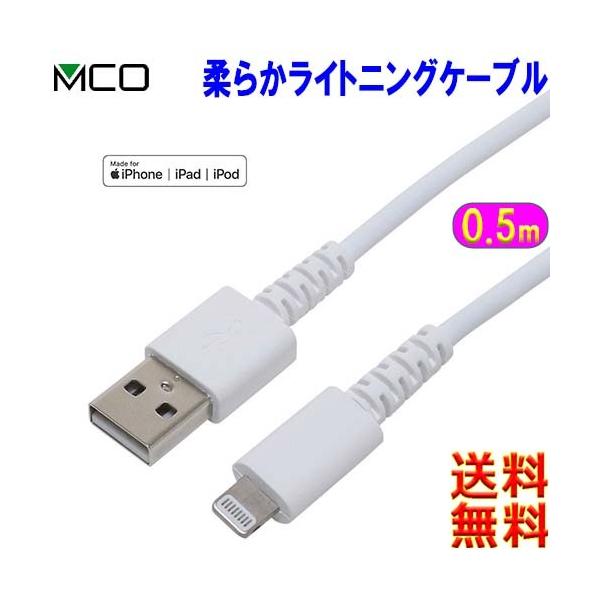 ミヨシ MCO SLC-YS05【0.5m】MFi認証 USBケーブル 柔らかのに高耐久な Lightningケーブル ライトニング 急速充電 通信両対応【送料無料n】usb Lightning cable