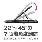 - ■底面に回転機構が搭載されており、画面の向きを自由に変更できます■7段階の角度調節が可能■コンパクトに収納でき、邪魔になりません■目線を高くすることで肩や腰への負担を軽減