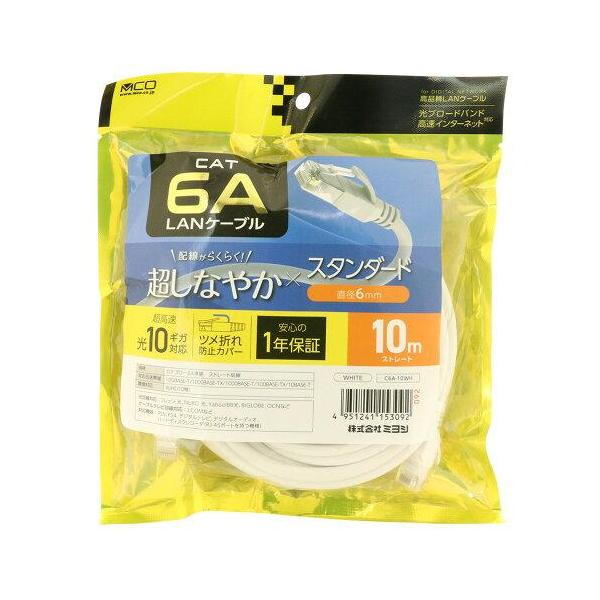 - 【返品種別A】□「返品種別」について詳しくはこちら□2023年06月 発売メーカー保証期間 1年※ケーブルを抜き挿しする際は、プラグ部分に強い力を加えないでください。※配線の際はケーブルを極度に折り曲げないようご注意ください。※本製品の保証は日本国内のみで有効です。光ブロードバンドに最適な超高速10ギガ(10Gbps)対応LANケーブル◆10Gbps(10GBASE-T)対応最大10Gbpsの超高速通信に対応しています。大容量のデータ通信が発生するゲームや動画配信サービスの通信に最適です。◆最高クラスの伝送性能CAT.6の2倍である500Mhzの伝送帯域に対応しています。通信エラーを防ぎ、より高速で安定したデータ転送を実現します。◆超しなやかケーブル採用やわらかく絡みづらい『超しなやかケーブル』採用で配線が楽にできます。◆十字介在内蔵ケーブル採用内在した十字介在により『干渉ノイズ』や『伝送信号の漏れ』を防止して、通信エラーを防ぎます。◆ツメ折れ防止カバー採用引っかかり等による、ツメの破損を防止するプラグカバーを採用しています。◆RoHS指令対応(10物質)有害物質の含有量を抑えた環境に配慮されたケーブルです。■ 仕 様 ■対応規格:カテゴリー6A(10GBASE-T)カテゴリー6(1000BASE-TX)カテゴリー5e(1000BASE-T)カテゴリー5(100BASE-TX)カテゴリー3(10BASE-T)ケーブル径:約6mmケーブル長さ:10mケーブル:UTP/26AWG/ストレート結線/ヨリ線導体コネクタ:RJ45環境対応:RoHS(10物質)光回線対応:フレッツ光、NURO光、Yahoo! BB光、BIGLOBE、OCNなどケーブルテレビ回線対応:J:COMなど対応機器:PS5、PS4、デジタルテレビ、デジタルオーディオ、ハードディスクレコーダ(RJ-45ポートを持つ機種)などカラー:ホワイト[C6A10WH]パソコン周辺>電源/配線>ケーブル>LANケーブル