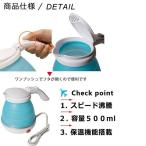 - 【送料無料】 NHK まちかど情報室で紹介されました。 新生活支援 旅人専科 折りたためる トラベルケトル 収納が便利 TravelKettle・旅行電熱水壺 手動電圧切替式・国内・海外・ワールドワイド対応 快速沸騰・保温機能搭載 MBE-TK02折りたためるトラベルケトル湯沸かし器 海外旅行グッズ 調理器 旅行用品 商品特長: ・スーツケースにも入れやすいコンパクトサイズ シリコン部を折りたたみできるのでコンパクトに収納できます。 収納時は使用時の約2/3に折りたためます。 ・普段使いから旅行先まで、毎日使える 電圧切替式(手動)だから、国内・海外・ワールドワイド対応、日本国内はもちろん、海外でも使うことができます。 ※電源変換プラグ(別売)が必要になる場合があります。 ・使いやすいミニサイズ カップラーメンやコーヒーなど、十分湯沸かしできるミニサイズです。 ・一人使いにも便利なサイズです。 500mlの目安 コーヒーなら:約2-3杯分 味噌汁やスープなら:約2-3杯分 カップ麺なら:約1-2杯分 育児ミルクなら:約2-4杯分 ・フタがワンプッシュで開く ボタンを押すとフタが開きます。 ケトルへの給水時に片手がふさがっていても大丈夫です。 ・保温機能搭載 冷めると自動で再沸騰する保温機能搭載 ※水が入っていない場合や保温の必要がない場合は、 必ず電源をOFFにするか電源ケーブルを抜いてください。 商品仕様: 電源:AC100〜127V/220〜240V 50/60Hz 消費電力:100〜127V:570〜920W/220-240V:690〜820W 電源コード:約1m(Aプラグ) 沸騰時間(目安):500ml:約4分〜4分30秒 200ml:約2分30秒〜3分 ※上記沸騰時間は目安です。水温や気温など、ご使用環境により大きく前後する可能性があります。 サイズ:使用時:約W129×H152×D202mm(突起部除く) 収納時:約W129×H100×D202mm(突起部除く) 重量:約540g(本体のみ) 容量:最大500ml 材質:シリコン、PPほか ▼関連商品ははこちら!▼