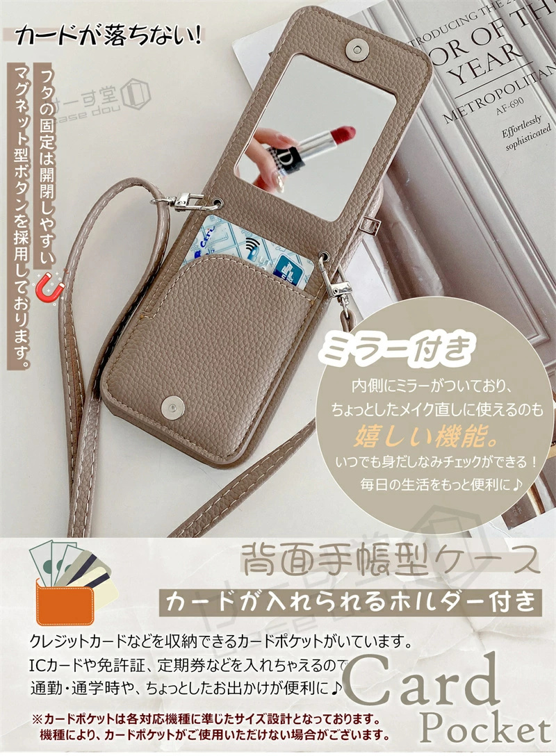 - 商品説明文 対応機種 【ご購入の際に、ご希望の機種をお選びください。】 iPhone 17 (6.3インチ) iPhone Air (6.5インチ) iPhone 17 Pro (6.3インチ) iPhone 17 Pro Max (6.9インチ) iPhone 16e (6.1インチ) 2025 iPhone 16 (6.1インチ) iPhone 16 Pro (6.3インチ) iPhone 16 Plus (6.7インチ) iPhone 16 Pro Max (6.9インチ) iPhone 15 (6.1インチ) iPhone 15Pro (6.1インチ) iPhone 15Plus (6.7インチ) iPhone 15ProMax (6.7インチ) iPhone 14 Pro Max (6.7インチ) iPhone 14 Pro (6.1インチ) iPhone 14 (6.1インチ) iPhone 14 Plus (6.7インチ) iPhone 13 Pro Max (6.7インチ) iPhone 13 Pro (6.1インチ) iPhone 13 (6.1インチ) iPhone 12 Pro Max (6.7インチ) iPhone 12 (6.1インチ) /iPhone 12 Pro (6.1インチ) (共通サイズ) iPhone 11 Pro Max (6.5インチ) iPhone 11 (6.1インチ) iPhone 11 Pro (5.8インチ) iPhone Xs Max (6.5インチ) iPhone XR (6.1インチ) iPhone X/ iPhone XS (5.8インチ) (共通サイズ) iPhone SE (第3世代) /iPhone SE (第2世代) /iPhone8 / iPhone7 (共通サイズ) iPhone8Plus /iPhone7Plus (共通サイズ) オススメポイント ● セット内容:スマホケース/ショルダーストラップ ● 今大流行!上品なデザインが機能性抜群のスマホケースが新登場! ● 長めのショルダーで両手が空いて使いやすい!バッグから出し入れする煩わしさから開放! ● 化粧直しや身だしなみチェックに最適なミラーも付いております。 ● 大人な雰囲気を醸し出す、大人可愛いのバイカラーが魅力。 ● カードを入れることのできるポケットがついており、クレジットカードや、IC系カードを入れることができます。 ● ケースをしたままストレスの無い操作が可能。 ● 衝撃を吸収する素材を使用し、スマホ本体を衝撃から守ります。 ● 色違いで揃えたりちょっとしたプレゼントとしてもぴったりです。 仕様 ・合成皮革(PUレザー素材) ・熱可塑性ポリウレタン(TPU素材 ) 【ストラップホール】あり 【ストラップ】あり 【マグネット】あり 納期について ※休日の発送及びメッセージ返信はしかねますのであらかじめご了承くださいませ。 ※生産の都合上、お届け時期が前後する場合がございます。 ※状況によって発送目案は変更する場合がございます。詳しくは商品選択画面にてご確認ください。 ※出荷手配後のご注文内容のご変更はできかねますので、予めご了承ください。 配送方法 メール便(宅配便配送の場合別途送料) ご注意事項について ※機種専用のスマホケースなので、お手持ちのご利用端末をご確認の上、ご購入をお願いします。 ※商品のお色はお客様のPC環境によって多少色合い、見え方など違ってまいりますのでご了承下さいますようお願いします。 ※本製品ご使用における人体・スマートフォン本体を含む持ち物・データなどの損傷、損失、紛失に対し、弊社は一切の責任を負いかねます。 ※厚みのあるカード収納や、収納数により厚みがあるとフタが閉まらない事がございます。予めご了承下さい。 ※本製品は品質向上のため、予告なくデザイン・仕様などを変更する場合がございます。 ※関連商品名※ スマホケース ショルダー タイプ 小銭入れ付き 携帯ケース iPhone15pro iPhone 15 iPhone 15ProMax 15pro ケース iphone14 pro iphone14pro iphone 13pro アイフォン14 アイフォン13プロ アイフォン12 プロ アイフォン 14pro アイフォン 12 プロ アイフォン アイホン iPhone 14 13 12 11 pro max iPhone15Promaxケース iPhone15Plusケース アイホン 15 Pro Max Plus アイフォン15ケース アイホン15 ケース おしゃれ かわいい 可愛い スマホショルダー 携帯ショルダーストラップ スマホケース 手帳型 チャック付き 小銭入れ付き スマホケース 鏡付き ミラー付き くすみカラー 手ぶら 誕生日 プレゼント ギフト カード収納 iPhone14 iPhone14Pro iPhone14Promax iPhone14Plus iPhone13 iPhone13Pro iPhone13Promax iPhone12 iPhone12Pro iPhone12Promax iPhone11 iPhone11pro iPhone11ProMax iPhoneXR iPhoneXsMax iPhoneXS iPhoneX iPhone8 iPhone8Plus iPhone7 iPhone7Plus iPhone 15 Pro Max Plus 携帯ケース ショルダー ミラー 鏡 かわいい 人気 お洒落 おしゃれ 可愛い スマホケース 手帳型 スマホケース ジッパー付き チャック付き ジップ付き ファスナー付き ポケット アイフォン アイホン iPhone 17 Pro Max air スマホケース いphone17pro max ケース いphoneair ケース あいふおん17ケース アイフォン17エア アイホン 17 Air カバー 2025年秋モデル アイホン17プロ apple 2025 iphone17ケース iPhone 17 proケース カバー iphone17proケース A19Pro iphone17proケース アイホンエアー アイフォン17ケース 6.3インチ アイホン17ケース 17 17Air 17Pro 17promax ケース iPhonese 第3世代 ケース iPhone11 ケース iPhone8 ケース おしゃれ iPhone13 ケース かわいい iPhonese3 ケース おしゃれ iPhone se ケース 第2世代 おしゃれ iPhone14 ケース アイフォン14ケース おしゃれ アイフォン アイホン iPhone 14 13 12 11 pro max 手帳型ケース ショルダー タイプ スマホケース 女の子 おしゃれ iPhone 16 eケース 16eスマホケース iPhone16eケース アイフォン16eケース アイホン16eケース iPhonese 4 第4世代 第四世代 2025年 iPhonese4 ケース かわいい 可愛い 上品 女子 ショルダーケース カード収納 カードいれ icカードポケット付き 韓国 外出 散歩 肩掛け ストラッ