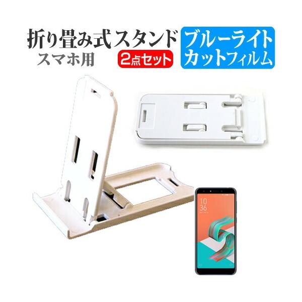 - エイスース ZenFone 5Q 折り畳み式 スマホスタンド 白 と 液晶保護フィルム ブルーライトカット ポータブル スタンド 互換品
