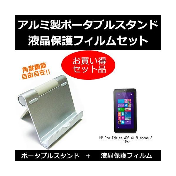 HP Pro Tablet 408 G1 Windows 8.1 Pro アルミ製 ポータブルスタンド と 反射防止フィルム のセット 角度調節自在 折り畳み式 互換品