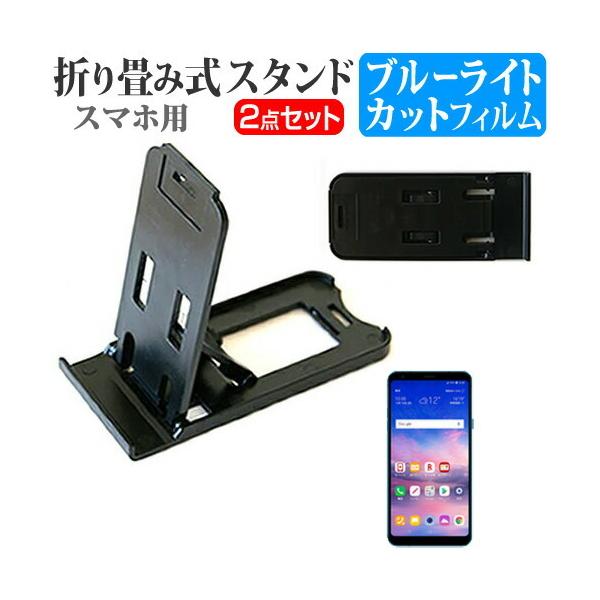 LGエレクトロニクス LG Q Stylus 折り畳み式 スマホスタンド 黒 と 液晶 保護 フィルム ブルーライトカット ポータブル スタンド 互換品