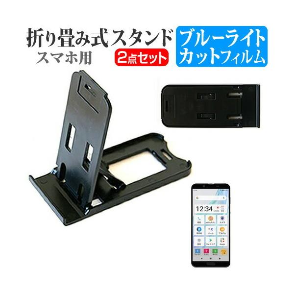シャープ AQUOS sense2 かんたん 折り畳み式 スマホスタンド 黒 と 液晶保護フィルム ブルーライトカット ポータブル スタンド 互換品