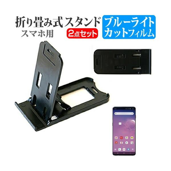 - サムスン Galaxy S10 専用 折り畳み式 スマホスタンド 黒 と 液晶保護フィルム ブルーライトカット ポータブル スタンド 互換品