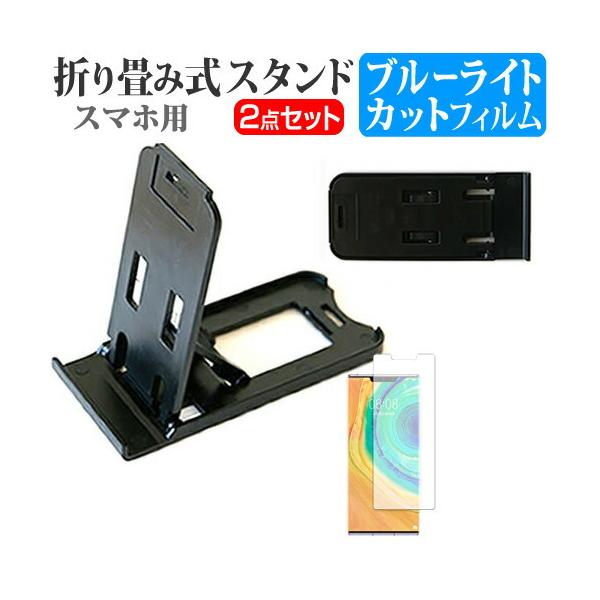 HUAWEI Mate 30 Pro 5G 6.53インチ 機種で使える 専用 折り畳み式 スマホスタンド 黒 と ブルーライトカット 液晶 保護 フィルム ポータブル スタンド 互換品