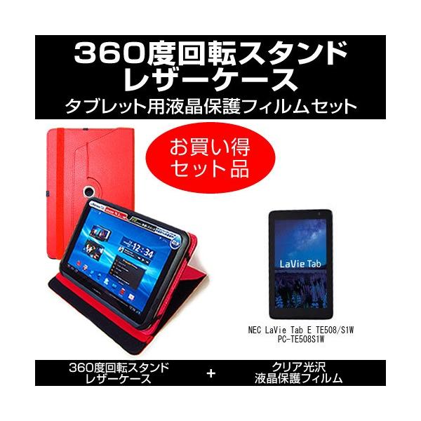 - 【360度回転スタンドレザーケース 赤 と液晶保護フィルム(指紋防止・クリア光沢)のセット】NEC LaVie Tab E TE508/S1W PC-TE508S1W[8インチ(1280x800)]機種で使える 回転するので縦横どちらにも固定可能、キズ防止、防塵、プロテクトセット(クリーニングクロス&ヘラ付き) レザー 手帳型 フリップケース 収納 フィルム シート カバー プロテクター プロテクト フィルター フィルタ 液晶 保護 画面 スクリーン 飛散防止 防指紋 クリア 光沢 透明 えぬいーしー 日本電気 エヌイーシー NEC NEC らび らヴぃ LaVie Tab らびたぶ ラビ ラビタブ ラヴィタブ ラヴィ タブ LaVie Tab 互換品