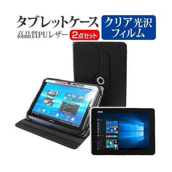 ASUS ASUS TransBook T100HA T100HA-128S 10.1インチ スタンド機能レザーケース黒 と 液晶 保護 フィルム 指紋防止 クリア光沢 互換品