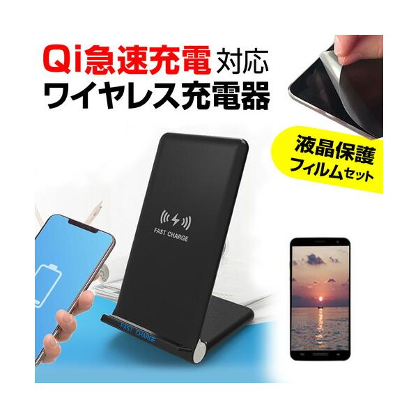Apple iPhone 11 Pro 5.8インチ 機種で使える 置くだけ充電 ワイヤレス 充電器 と 反射防止 液晶 保護 フィルム セット 無線充電 Qi充電 互換品