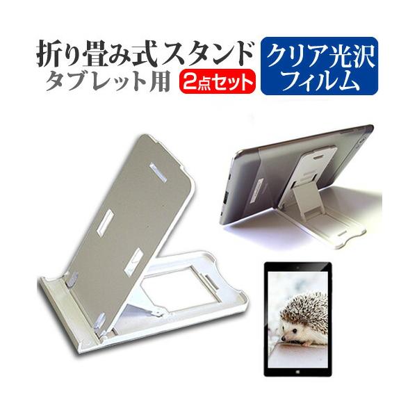 YAMAZEN キュリオム QA15-80 [8インチ] 互換品 折り畳み タブレットスタンド(白) と クリア光沢 液晶保護フィルム