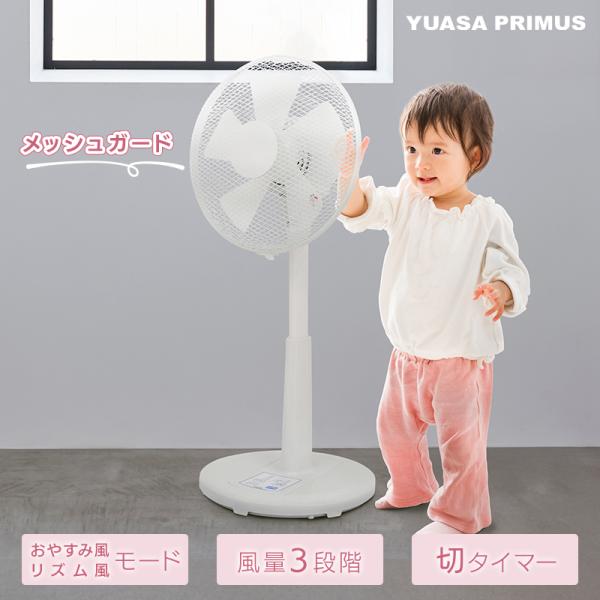 【アウトレット】ユアサプライムス リビング扇風機 YT-3110FM(W) メッシュガード 5枚羽根 羽根径30cm 風量3段階 リズム風 おやすみ風 切タイマー 8時間自動オフ リビングファン YUASA